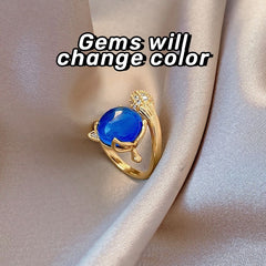 Cincin Stainless Steel Sensitif Suhu dengan Desain Rubah untuk Wanita - Aksesoris Anti Pudar | Perhiasan Hadiah Elegan